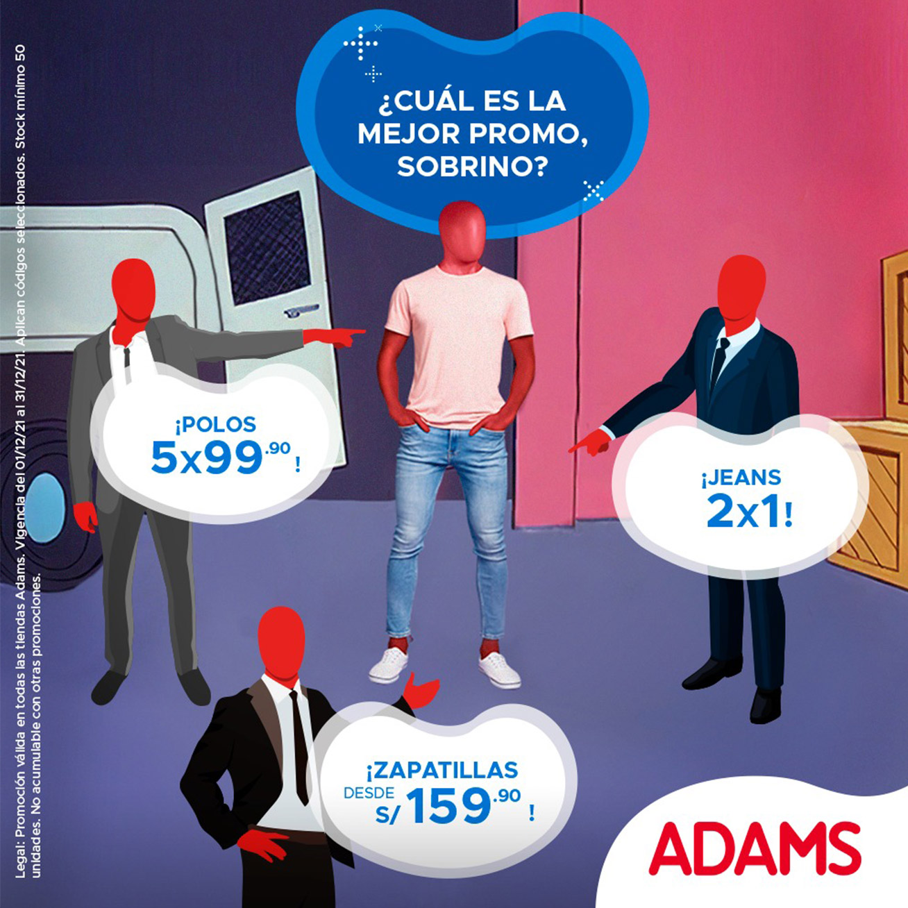 Tiendas ADAMS se caracteriza por ser una marca con actitud y estilo, es por eso que creamos a Slendy, el personaje ícono de la tienda; un maniquí rojo, divertido e irreverente que se apodera de los temas coyunturales para promocionar la marca.